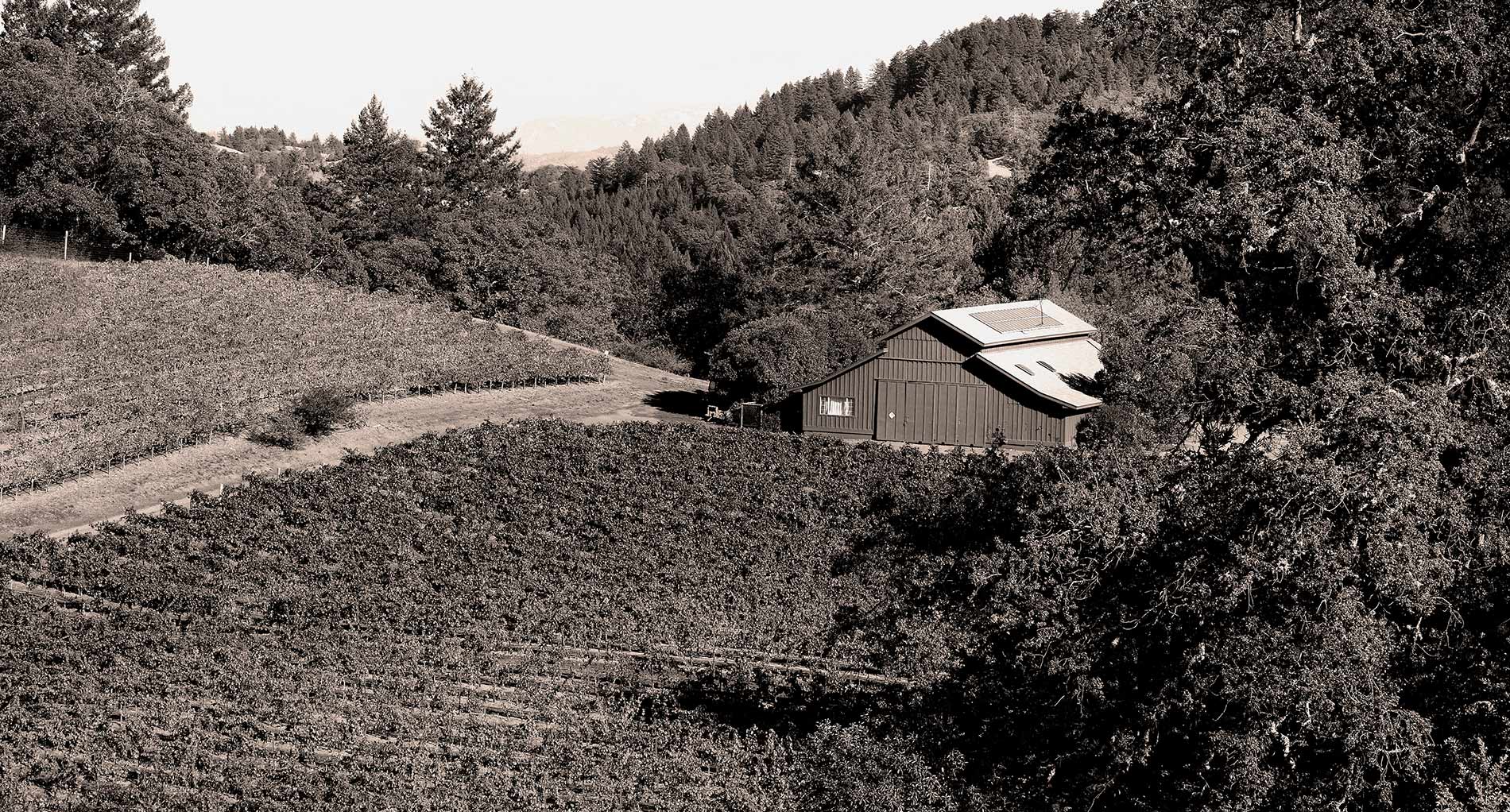 Remote hillside vineyard in the Rockpile AVA producing intense Zinfandel and Petite Sirah from rocky, steep terrain.